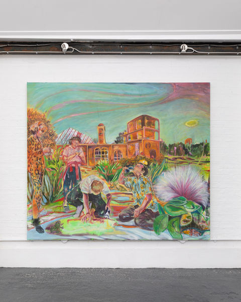 Kirsten Glass’s work has evolved through various phases over the last 30 years. Always, though, there is an interaction between a particular type of image (used as a host or a vessel) and the more abstract energies of her painting activity. In past work the image-types she has employed have included: children’s play stencils, magazine models, pop lyrics, friends’ shadows, structural conventions of abstract painting, sacred geometry, stock silhouettes and most recently the appropriation of characters from colouring-in pages. In The Dreaming, a line painting of a cartoon sleeping cat from a colouring book is superimposed on the messy, free-wheeling oil painting under-layer (a sort of landscape from memory turned sideways and at the same time a primal female body). The underlayer both colours the dreaming cat and exceeds it. Or does the domesticated image-type dream of the outside (of that which exceeds it)? Of her 2022 exhibition, Night Scented Stock, she wrote: ‘I am an artisan and the paintings are dreaming.’ Emerging from her background interests in magic, altered states of consciousness, alchemy and animism, Glass writes of her playful, collage-like paintings: ‘In the end each painting has to somehow harmonise its elements so it doesn't need me any more.’ www.kirstenglass.com